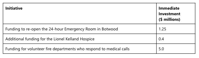 - Reopening the Emergency Department at the Dr. Hugh Twomey Health Centre in Botwood, 24 hours a day - a promise the Liberals have twice made and twice broken.